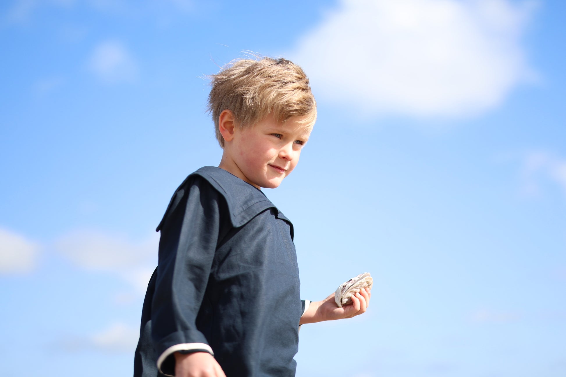 Calixte est un doux mélange d'esprit classique et de modernité. Cette blouse dotée d'un empiècement structuré inspiré des cols des matelots et de deux boutons de bois sur les épaules lui offre un joli esprit marin tant apprécié sur nos tête blondes. Confortable par son volume qui laisse de l'espace au mouvement, elle saura vivre la vie "de tous les jours" avec vos enfants mais pourra aussi être portée très élégamment pour une occasion ou une cérémonie. Pour cette version printanière Calixte est déclinée dans une magnifique étoffe en coton et lin avec un aspect légèrement brut d'un bleu marine foncé très raffiné . Si les manches sont un peu longues vous pourrez les retrousser et laisser apparaître le joli biais contrastant beige lin qui offre une finition soignée.